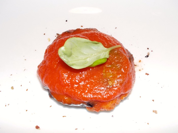 Casa Li Jalantuommeni, Cuciniello crema di pomodoro con ricottina di capra e scottata di uovo di quaglia