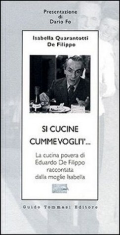 In questi giorni di fine luglio mi è capitato tra le mani un libro, pubblicato dalla moglie, Isabella Quarantotti de Filippo nel 2001 per Guido Tommasi Editore: “ SI CUCINE CUMME VOGL’Ì.” La cucina povera di Eduardo. Si tratta di un poemetto gastronomico che Eduardo cominciò negli anni’ 60 e di cui nessuno era a conoscenza, alla moglie Isabella diceva solo che non si trattava di un semplice libro di cucina, ovvero, una raccolta di ricette, e che per questo era faticoso e richiedeva tempo. Eduardo descrive in versi i piatti della cucina popolare da lui più amati sin dall’infanzia con toni rievocativi e saporiti.