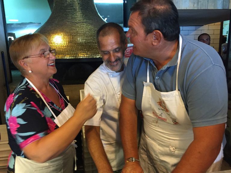 Che divertimento per Lidia Bastianich arrivare a Napoli e infilarsi subito tra il bancone e il forno con Davide Civitiello e gli executive chef Enzo De Angelis e Antonio Sorrrentino di Rossopomodoro a via Partenope.