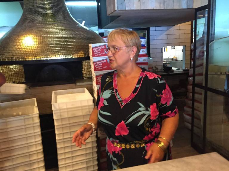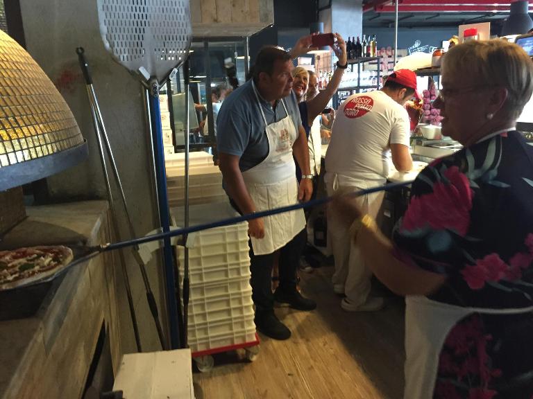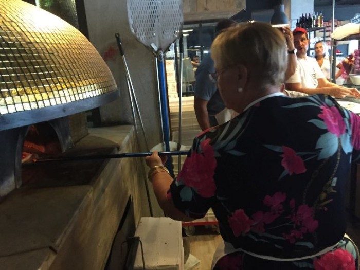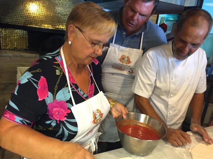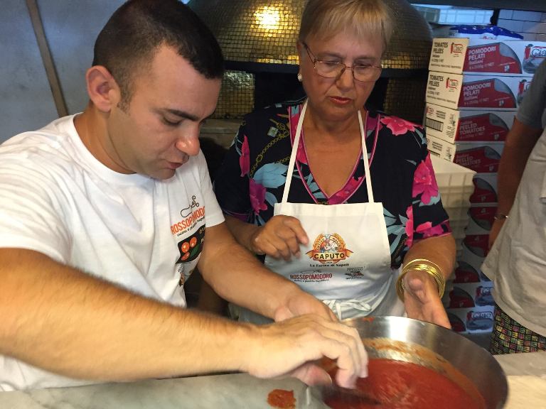 Lidia Bastianich fa la pizza napoletana da Rossopomodoro a via Partenope