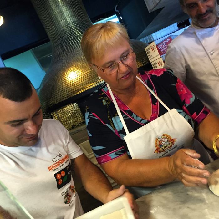 Martedì, appena sbarcata a Capodichino si è fiondata nel forno di Rossopomodoro a via Partenope dove, insieme al campione del mondo in carica Davide Civitiello, ha preparato quattro pizze prima di sedersi a tavola con il presidente del gruppo che l’ha invitata, Franco Manna, accompagnato da Clelia Martino (impegnata in questa settimana di Pizza Village per il brand), Antimo Caputo e con noi del Mattino. Una pizza, due piatti dell’executive Enzo de Angelis e una chiacchiera attorno ad una bella bottiglia di Gragnano di Poggio delle Baccanti. Perfetta sulla pizza come sui paccari e la parmigiana di orata.