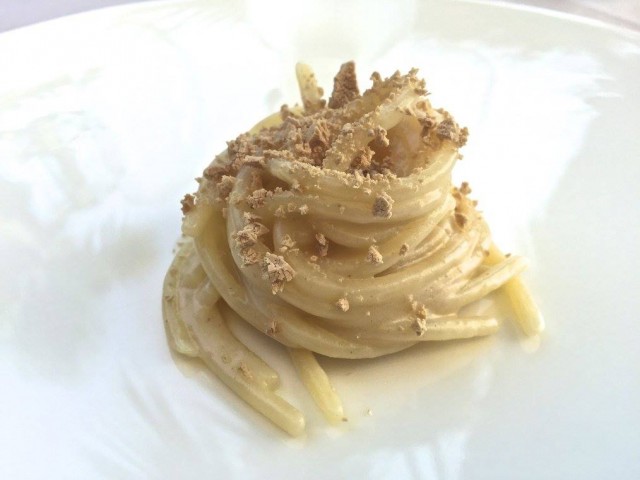 Personalmente ho ritrovato, a pochi mesi dalla mia prima visita, una cucina di sorprendente personalità, d’incredibile leggerezza, dai sapori decisi ma perfettamente bilanciati, una centralità del gusto esemplare, un dosaggio degli ingredienti millimetrico e una vena di creatività mai sopra le righe. Riccardo passa con facilità imbarazzante dalle grassezze alle acidità, con frequenti esplosioni di aromaticità e umami, senza mai oltrepassare il confine sottile che separa una solida impostazione di cucina da pericolosi giochi di stile privi di convinzione e materia culinaria. E’ senza dubbio un mirabile connubio di genio e di “regolatezza”. “Essendo aperto tutto l’anno mi posso allenare di più e tutti i giorni per fortuna”. Ci vuole un gran coraggio, non c’è che dire…