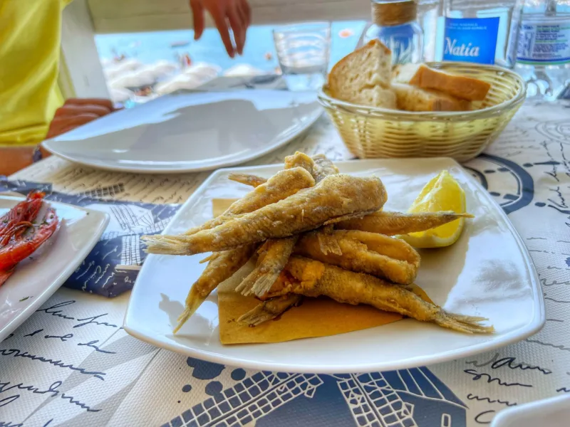 La cucina del Lido Rocco è principalmente basata sul mare ed è preparata con grande maestria. Il menu offre i sapori del territorio e una selezione di pescato fresco locale. La frittura di “occhialoni” è una vera delizia: il sapore unico di questo pesce azzurro è semplicemente irresistibile.
