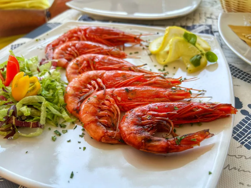I gamberi reali, di una qualità eccezionale, sono mediamente grandi, dal colore rosso vivace e dal sapore sorprendente. Sono giustamente tenaci al palato, dolci al punto giusto e la naturale sapida conferisce giusto equilibrio. Freschezza è la parola d’ordine e la cucina del Lido Rocco rispetta sempre la materia prima,
