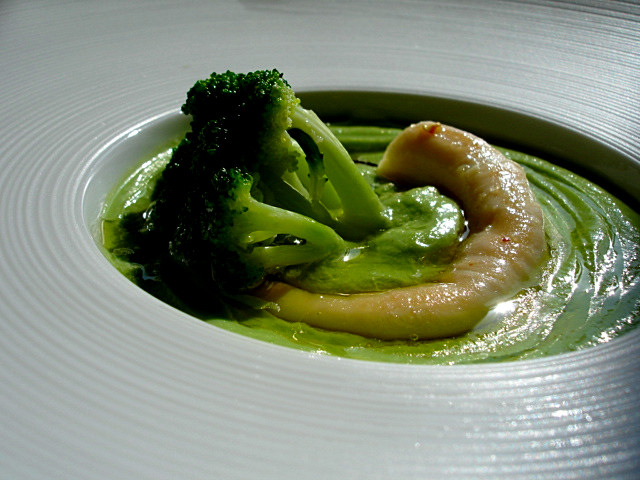 La sintesi di un pensiero consueto in Riviera. Un vegetale ed un prodotto del mare. Semplice ed appagante. E’ il caso di questo broccolo con il polpo, ma potrebbe esserlo anche con una zucchina trombetta, un carciofo, un asparago e molti altri vegetali che coltivati nella piana di Albenga forniscono un porto sicuro ad ogni ricetta che includa anche un prodotto del mare. Paolo Quartero, “champagnofilo” intransigente si diletta anche in cucina con risultati confortanti e brillanti esiti di pubblico che affolla soprattutto nella bella stagione la veranda in prima fila sul lungo mare di Alassio. Meglio però fuori stagione, quando le strutture montate in spiaggia a benefecio dei bagnanti saranno smontate e non impediranno ai clienti del Gabbiano di godersi la bellissima vista mare a filo spiaggia.