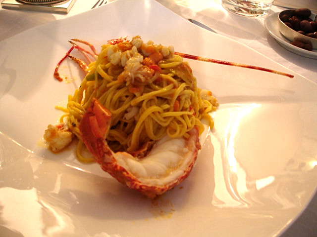 In gran forma la Caterina, anche se proprio una ragazzina non lo è più, ma solo per l’anagrafe, perché per energia e brillantezza di idee sta anche meglio di tante fanciulle. Nel suo covo storico, nascosto in uno dei borghi liguri tra i più curati e panoramici, continua a mettere in pratica una filosofia chiara di cucina e di ospitalità allargata alle due camere vista mare e all’enoteca sottostante il ristorante, dove poter attingere a qualche ottima bottiglia d’asporto o da bere sul posto. Le esecuzioni sono lineari, con il minimo contrappunto che sostenga senza alterare la parte materica che rimarrà sempre in evidenza. E il caso di questi festosi tagliolini all’uovo conditi con polpa d’aragosta e succo di gamberi, posati sopra la mezza coda d’aragosta lasciata al naturale. Il resto a seguire in un trionfo di pesci e crostacei oppure in una più misurata sequenza tradizionale diretta all’esplorazione del territorio. Quest’ultima molto meno onerosa della pescata di crostacei ma ugualmente didattica nella ricerca sulle ricette dell’entroterra.