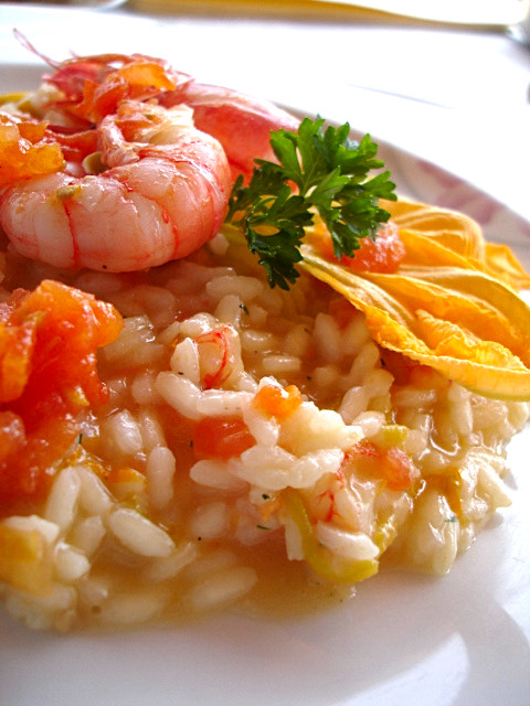 Conchiglia 041 14/8/2010 Torna a: Liguria. In viaggio lungo le buone tavole di Ponente guidati dal Guardiano del Faro – Seconda parte – Risotto con gamberi e fiori di zucchina. La Conchiglia, Arma di Taggia.Successiva →