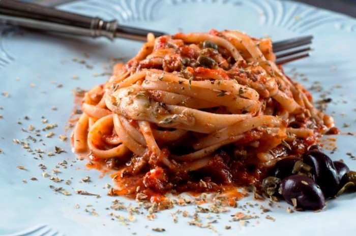 Linguine alla puttanesca con straccetti di bufala al profumo di capperi | Contest Le Strade della Mozzarella