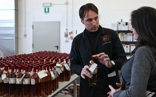 Non si può dire di certo che Marco non sia una persona schietta ma d’altra parte se non sono così a Salotti del Gusto non li vogliamo! “Io non staccherei mai, a volte mi sento un drogato di lavoro – e come non capirlo! – Rientro a casa dopo una giornata di lavoro, il telefono continua a squillare e io non riesco a smettere; a un certo punto sono obbligato altrimenti mia moglie si arrabbia!”. E insomma alla fine Marco ha ceduto a una sorta di legge della natura che lo voleva alle redini di una bellissima realtà messa su da suo bisnonno Leonello, che ha fatto di una passione un lavoro. Grande la sua soddisfazione, poco dopo l’avvio, di vendere i prodotti fuori dalla provincia: “La sua prima tappa importante fu Volterra. Se sapesse che ora esportiamo anche in America andrebbe in brodo di giuggiole! Certo da allora tante cose sono cambiate; basti pensare che dagli anni Ottanta abbiamo decuplicato la produzione”. I principi però sono rimasti quelli di un tempo ed è questa la prima cosa che ho apprezzato dell’azienda Morelli: “Senza una materia prima di qualità non si va da nessuna parte. Noi, a differenza di tante altre realtà dello stesso settore, siamo stati bravi a portare il concetto di food nei liquori; quindi non ci siamo concentrati sul profumo o sul gusto, cioè sul risultato finale, bensì sul prodotto, su una materia prima di alto livello, perché da lì poi una buona riuscita viene da sé. Questo è un percorso da cui, una volta intrapreso, è impossibile tornare indietro e ne andiamo fieri”.