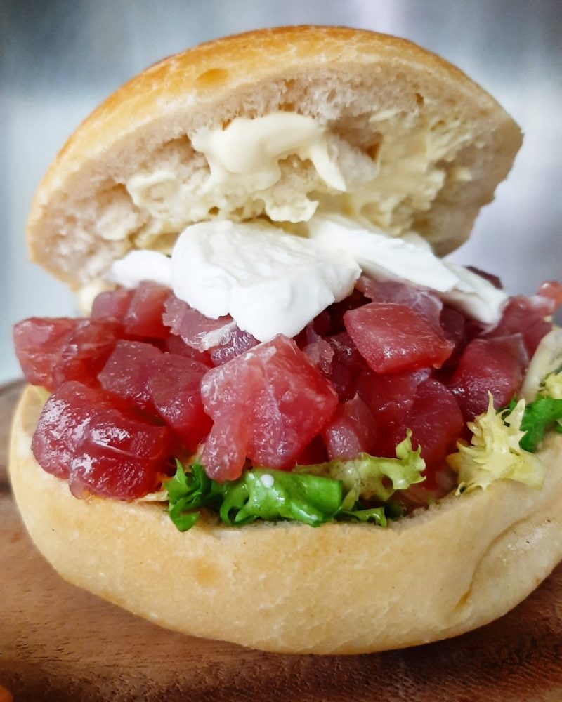 Veniamo a noi, la rosetta la compra, il bun lo fa lui, buoni entrambi e il cliente decide quale pane preferisce per il proprio panino. Il companatico? Si va dal classico fish and chips, con cotoletta di orata e patate fritte fresche, al panino con la tartarre di tonno, mozzarella di bufala e maionese al limone.