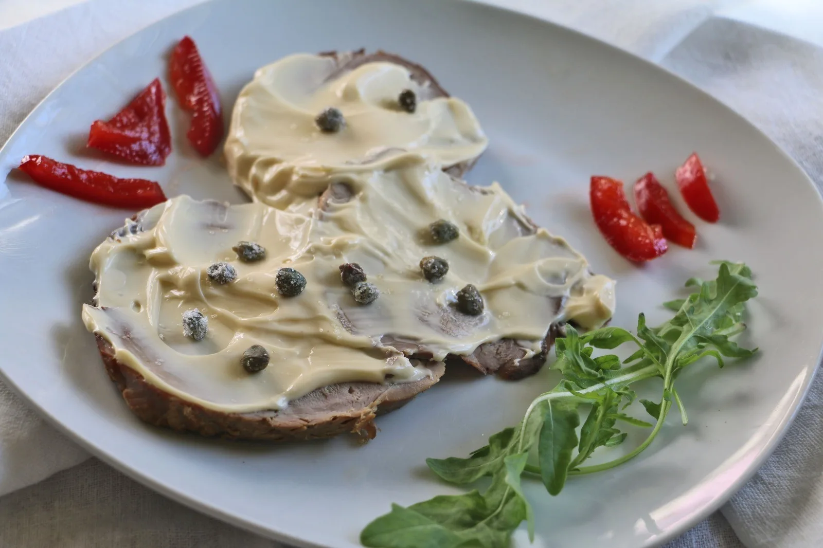 Un po’ di storia. È un piatto molto antico di origine piemontese, nato nel ‘700, molto probabilmente nel cuneese. All’inizio il tonno nemmeno compariva nella ricetta, essendo la carne condita con un’emulsione di olio capperi e acciughe. Oggi diremmo un piatto di riciclo, un modo per riutilizzare la carne lessa avanzata, insaporita dall’olio e le acciughe. Il termine “tonnè” deriva dal francese “tannè” che significa conciato e la lingua transalpina era uno di quei miscugli linguistici che contraddistingueva il Ducato di Savoia.