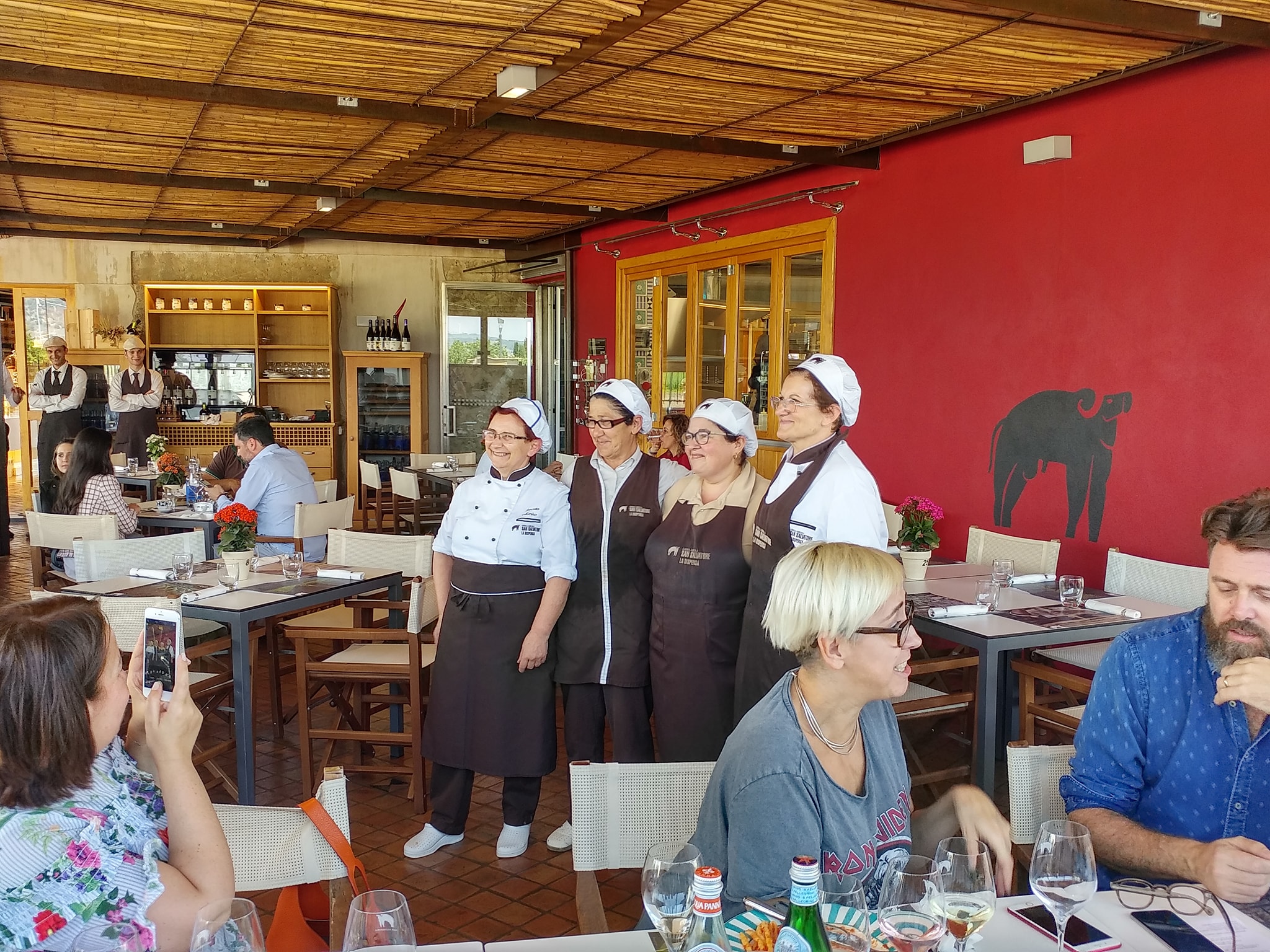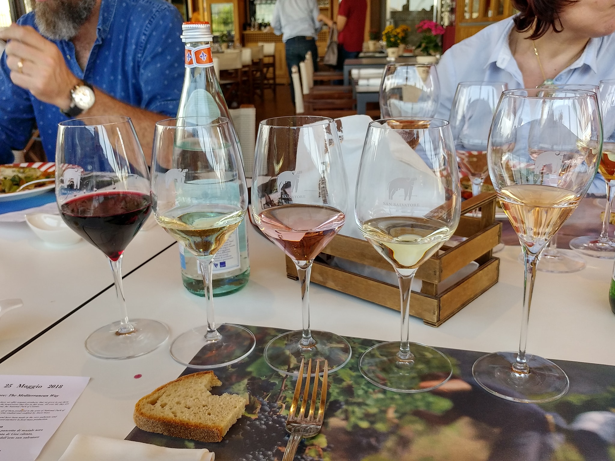 Gli stessi prodotti sono venduti e trasformati alla Dipensa San Salvatore di Capaccio Paestum, dove si è ritornati per il pranzo. Il locale è moderno, brioso, mentre la cucina è di matrice classica, immediata e senza fronzoli, e sa andare a segno in modo memorabile. Ai fornelli ci sono cuoche over60, per volontà stessa di Peppino, che si affida a loro totalmente per ricreare suggestioni e sapori del passato. Formaggi, salumi, primi, secondi, contorni e dolci (tra cui un ottimo yogurt magro) di primissimo piano, scortati a vista dai vini San Salvatore. Visita successiva ai locali destinati alla produzione, comprensivi di un percorso ideato per i visitatori impossibilitati a visitare le varie sale durante i processi di lavorazione.