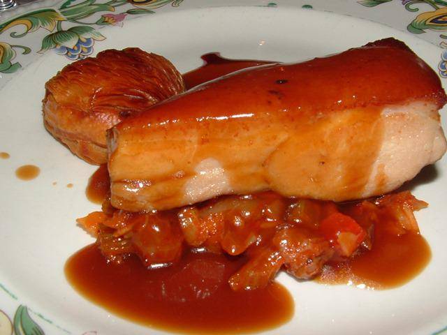 Maialino da latte croccante con caponatina di verdure. Sfogliatella di Mela Annurca con riduzione di Taurasi. Chef Agostino Iacobucci