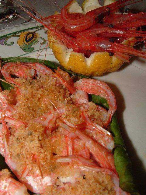 Presidio Slow Food, Gamberetti di nassa di Crapolla su foglia di Limone e crudi. Chef Paolo De Gregorio