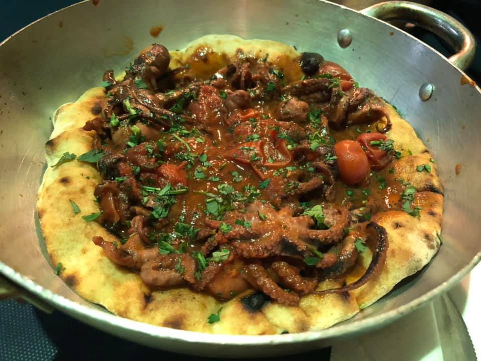 Le portate sono semplici ma studiate, tradizionali ma contestualmente contemporanee. Una cucina efficace, che piace, dove oltre agli antipasti e alla frittura, sono da segnalare: il pacchero con pomodori del piennolo, gamberi freschi e pistacchio, inoltre, non da ultimo, il baccalà cotto nel forno a legna servito con patate e papaccelle.