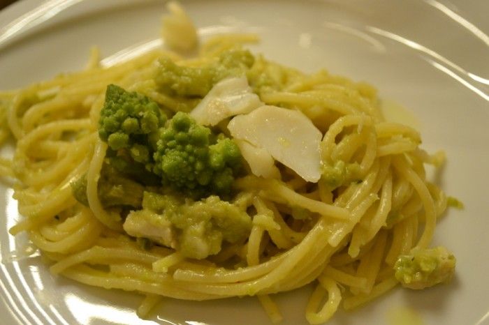 Spaghetti con ragu’ di Broccolo Romanesco e Baccala’ mantecato