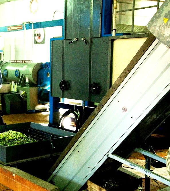 Il percorso delle olive prevede innanzitutto la loro pesatura per poi essere collocate nella tramoggia e così dare il via alle ulteriori fasi di lavaggio, frangitura, gramolatura, spremitura e separazione. Il defogliatore sfrutta l’azione di una ventola che, grazie all’aria compressa, rimuove rami e foglie per preparare le olive al lavaggio con acqua in un’apposita lavatrice che rimuove gli eventuali residui.