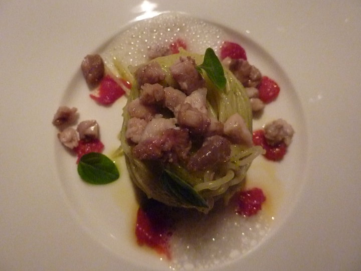 Poi sapori molto precisi, niente inguacchi, una cucina costruita attorno ad una materia prima attorno alla quale Nicola gira come faceva Cassius Clay con gli avversari. Una cucina di energia dunque, legata sicuramente alla ricca tradizione territoriale continuamente richiamata, ma anche divertita, aggiornata con guizzi biricchini decisamente interessanti.