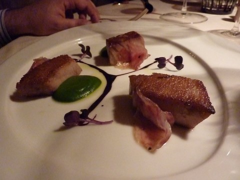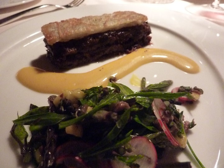 Tra i secondi questo è stato sicuramente il più divertente: fresco, molto dinamico, la dolcezza della carne d’oca è molto ben contrastata e si finisce rapidamente anche con l’aiuto delle erbe di campo.