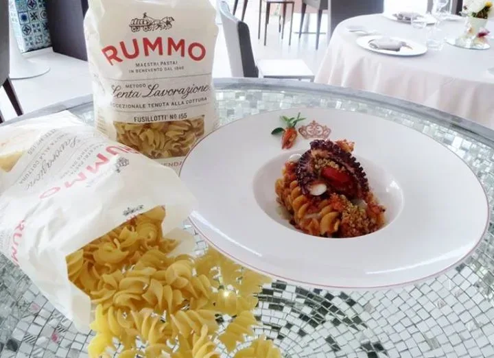Lorenzo Cuomo: fusillotti Rummo al ragù di polpo, polvere di pane saporito e crema di acciughe 23/10/2015 Torna a: Lorenzo Cuomo per Rummo | Fusillotti al ragù di polpo, polvere di pane saporito e crema di acciughe Lorenzo Cuomo: fusillotti Rummo al ragù di polpo, polvere di pane saporito e crema di acciughe