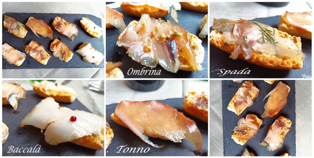 Raffaele, oltre a saper “braciare” e a conoscere le tecniche di preparazioni dei piatti della tradizione, è un appassionato di affumicature e stagionature, e durante una delle sue chiacchierate con i clienti ribadisce che lui affumica e stagiona ogni cosa che si possa affumicare o stagionare! Ed è cosi che come entrèe fa servire dei -Crostini arricchiti dai pesci affumicati con una tecnica che richiede, dal fresco al prodotto affumicato finito, circa un mese: dal Baccalà al Tonno, dall’Ombrina al Pesce Spada.