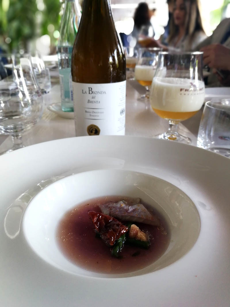 Così ad LSDM 2018 Alfonso Caputo ha presentato una “Triglia cruda con moka di ricci di mare, brodo di cavolo nero e pomodoro secco D’Amico”.
