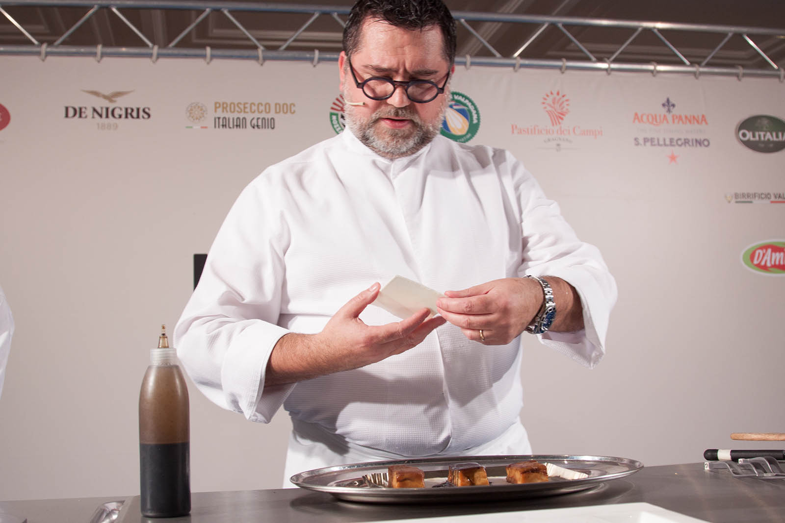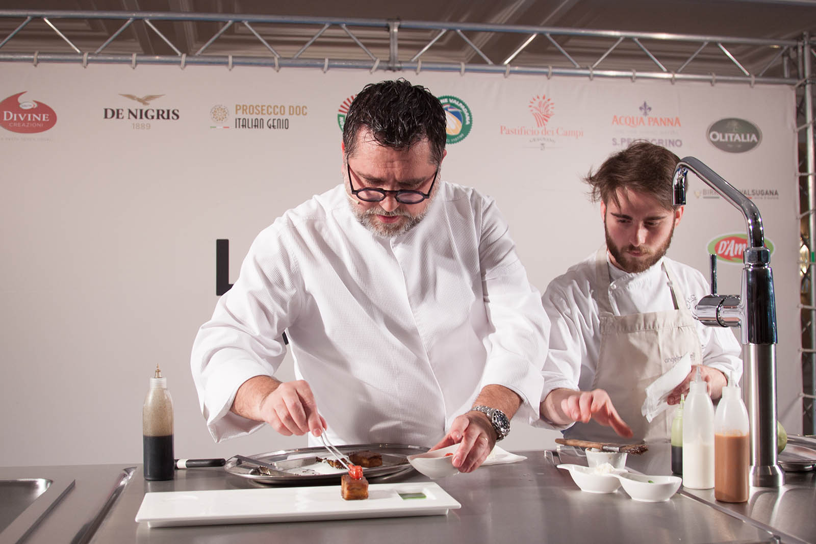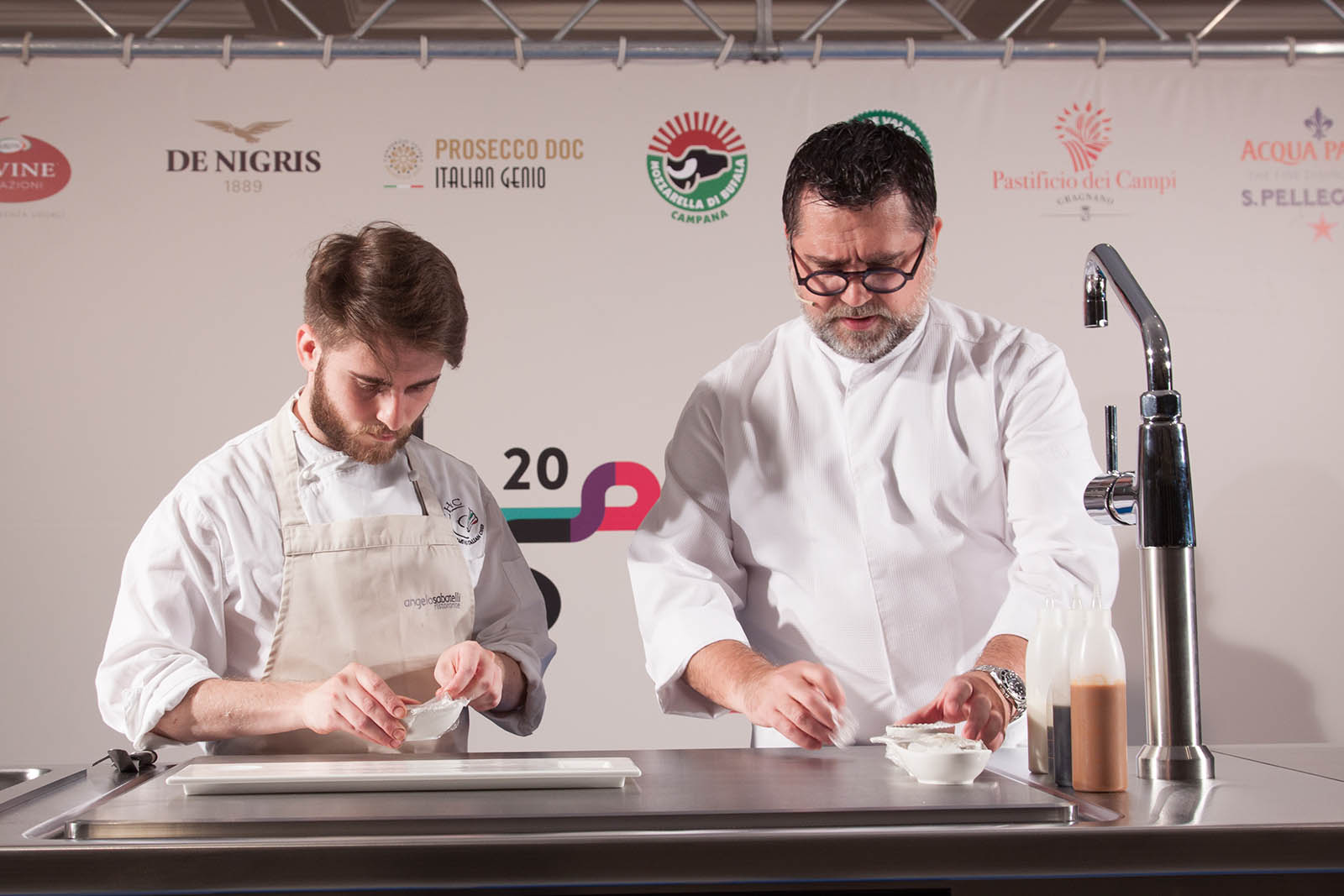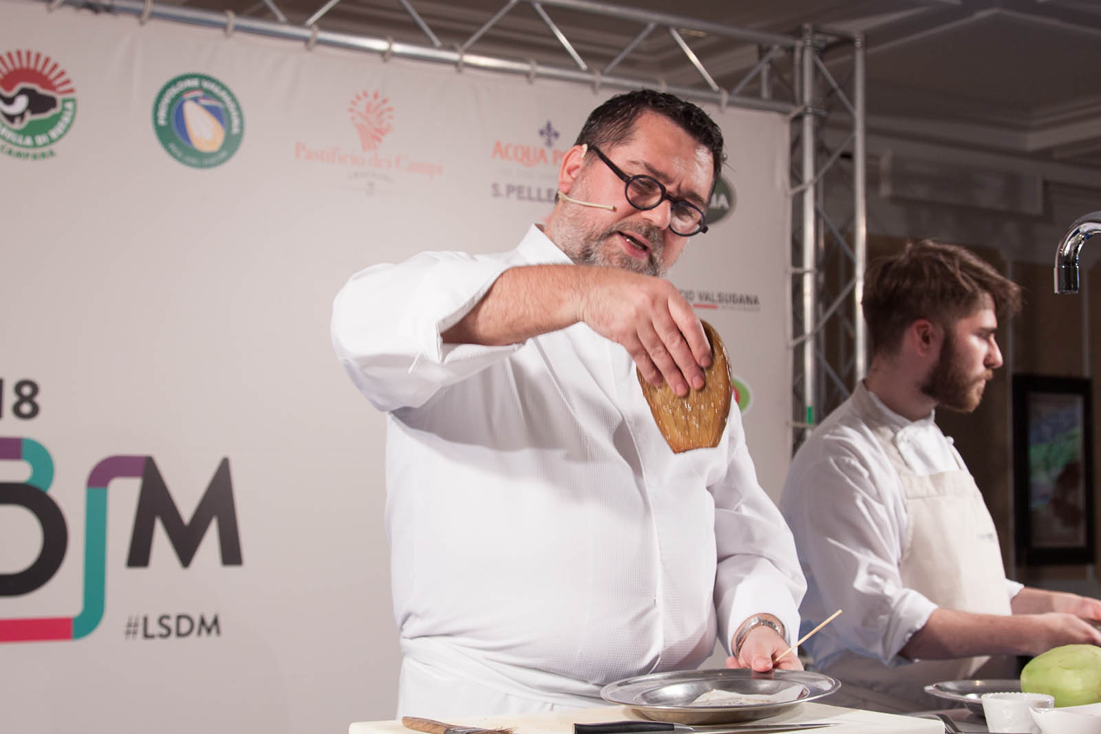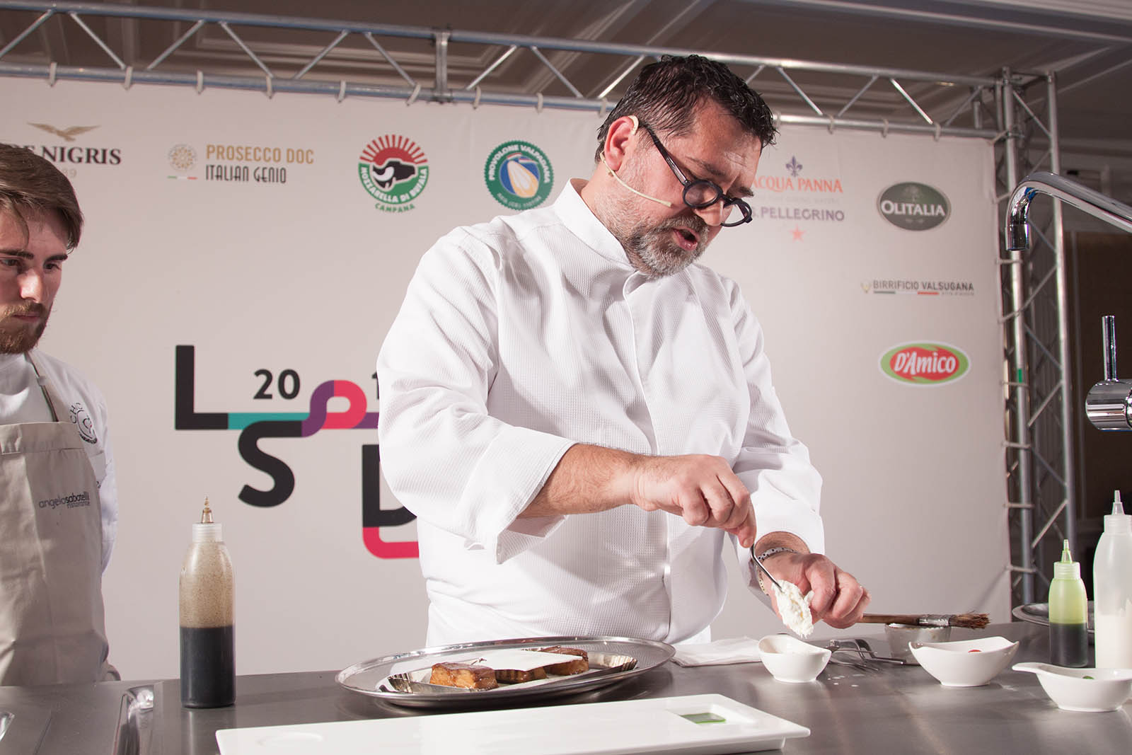 Un piatto semplice nell’approccio ma certo non nel processo di realizzazione, sottolinea Antonio Scuteri che modera la lezione, bell’esempio di come la cucina di Sabatelli riesca a “ricordare sapori antichi senza essere antica”.