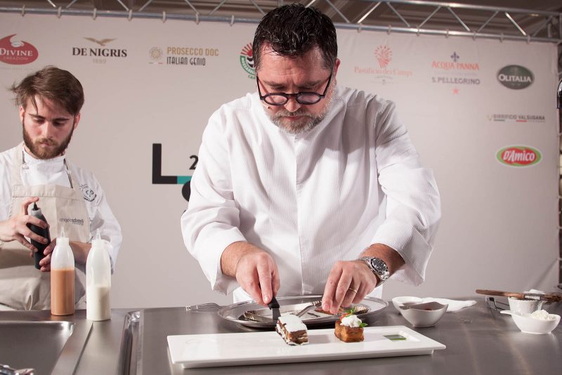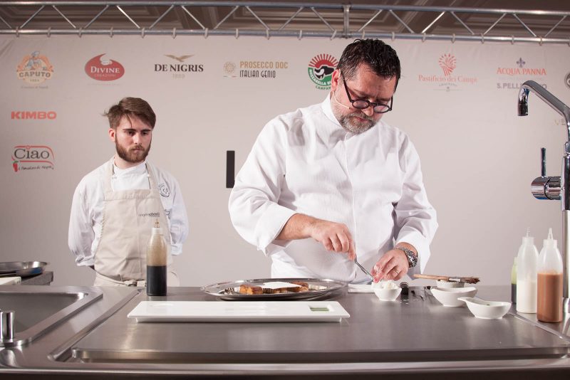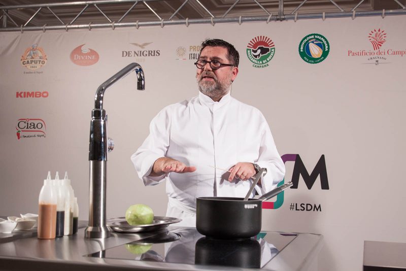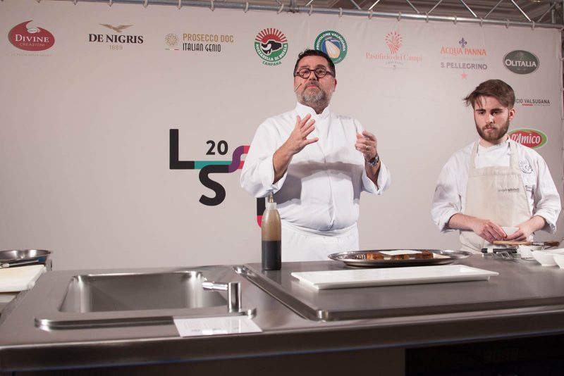Un piatto semplice nell’approccio ma certo non nel processo di realizzazione, sottolinea Antonio Scuteri che modera la lezione, bell’esempio di come la cucina di Sabatelli riesca a “ricordare sapori antichi senza essere antica”.