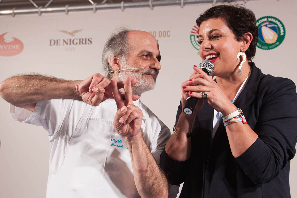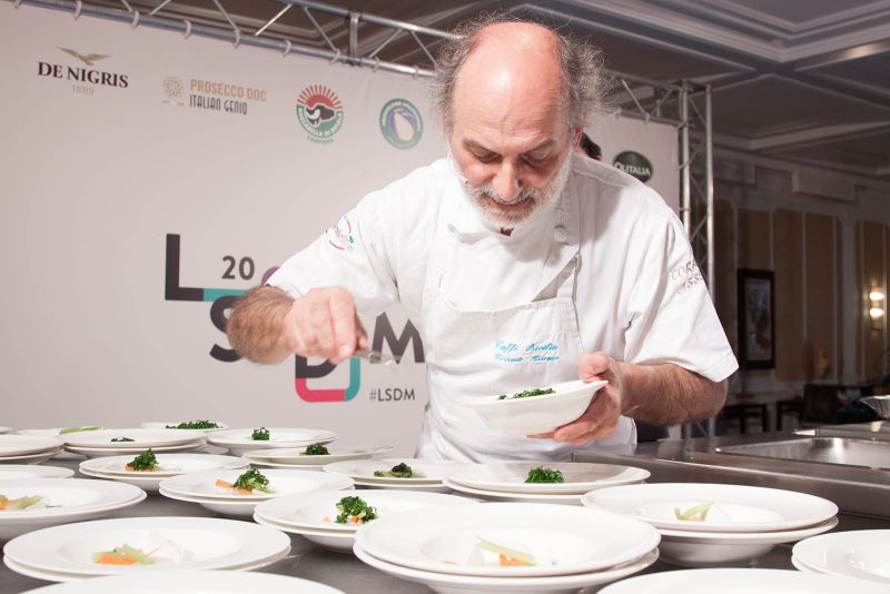 Il nome di Corrado Assenza, racconta Albert Sapere, è stato il primo venuto in mente a lui e Barbara Guerra quando hanno deciso il tema dell’undicesima edizione di LSDM. “Molte delle parole che usiamo più spesso, e che abbiamo ripreso per stilare il nostro decalogo del cuoco contemporaneo, sono parole che abbiamo sentito pronunciare da Corrado per primo. Sono tanti anni che propone non solo una pasticceria diversa ma cose nuove in generale, che lui riesce a cogliere per primo” spiega Albert lasciando la parola al patron del Caffè Sicilia e a Francesca Romana Barberini che lo modera.