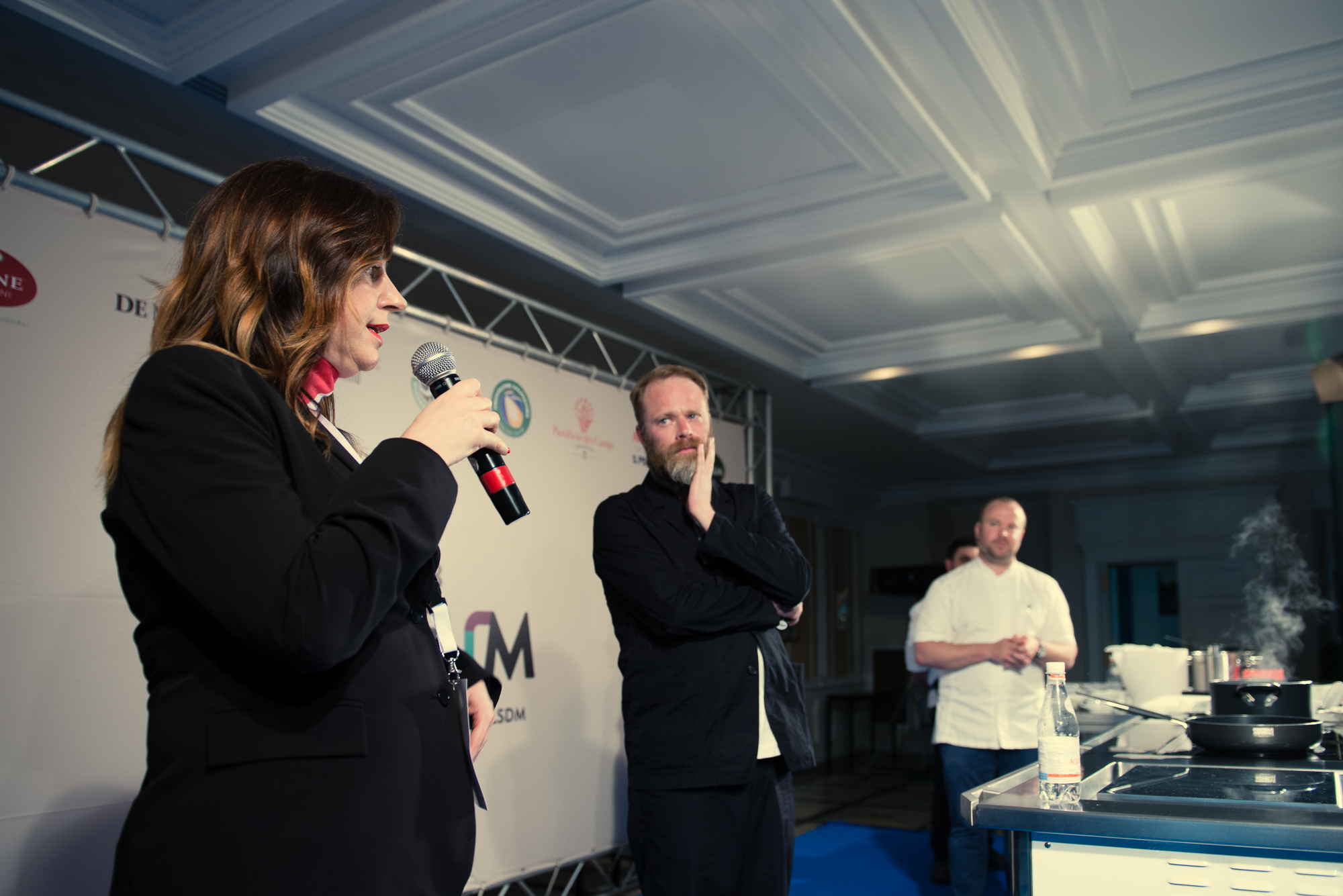 Daniel Berlin, arrivato dal sud della Svezia, e più esattamente dal villaggio di Skåne Tranås, e moderato nel suo intervento a LSDM 2018 da Mattias Kroon, entra subito nel vivo del tema del congresso: “Eat well, stay well” per lui vuol dire nessuno spreco e imparare a utilizzare e a cucinare l’intero animale. Daniel è.cacciatore da anni e porta avanti questa filosofia con convinzione nel suo Daniel Berlin Krog, due stelle Michelin, mentre osserva con un po’ di disappunto molti suoi colleghi che spendono tanto per comprare una materia prima di cui poi gettano buona parte.
