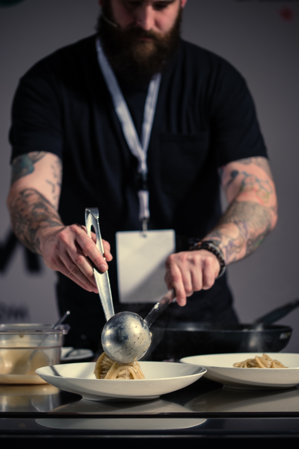 Joshua, alla sua prima volta in Italia, è rimasto colpito dal cibo e dalla calorosa ospitalità e confessa di essersi innamorato perdutamente della Genovese. E chi l’ha assaggiata, della sua Ceci e pepe, che con fascino discreto e misterioso ha condotto i presenti in un viaggio gustativo, dritti dritti fino al tavolo di una trattoria… a New York!