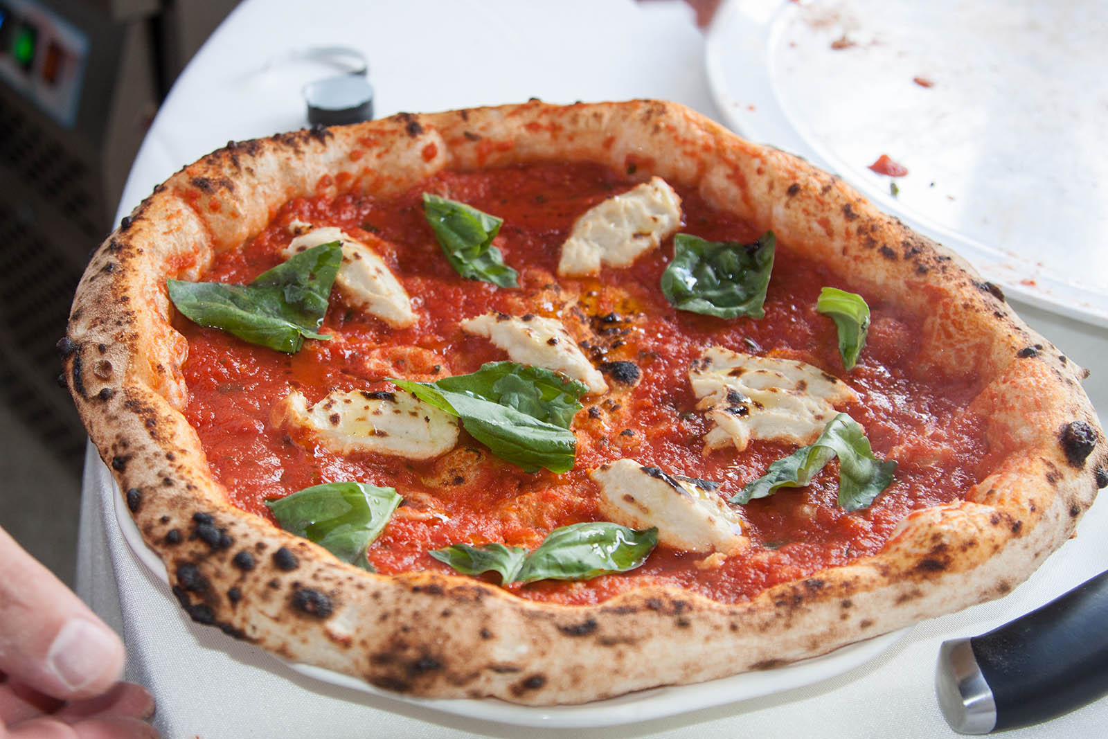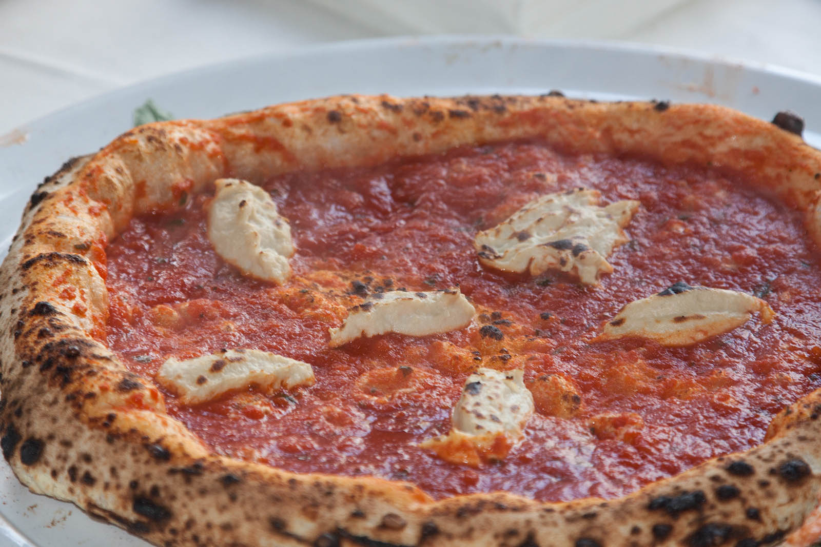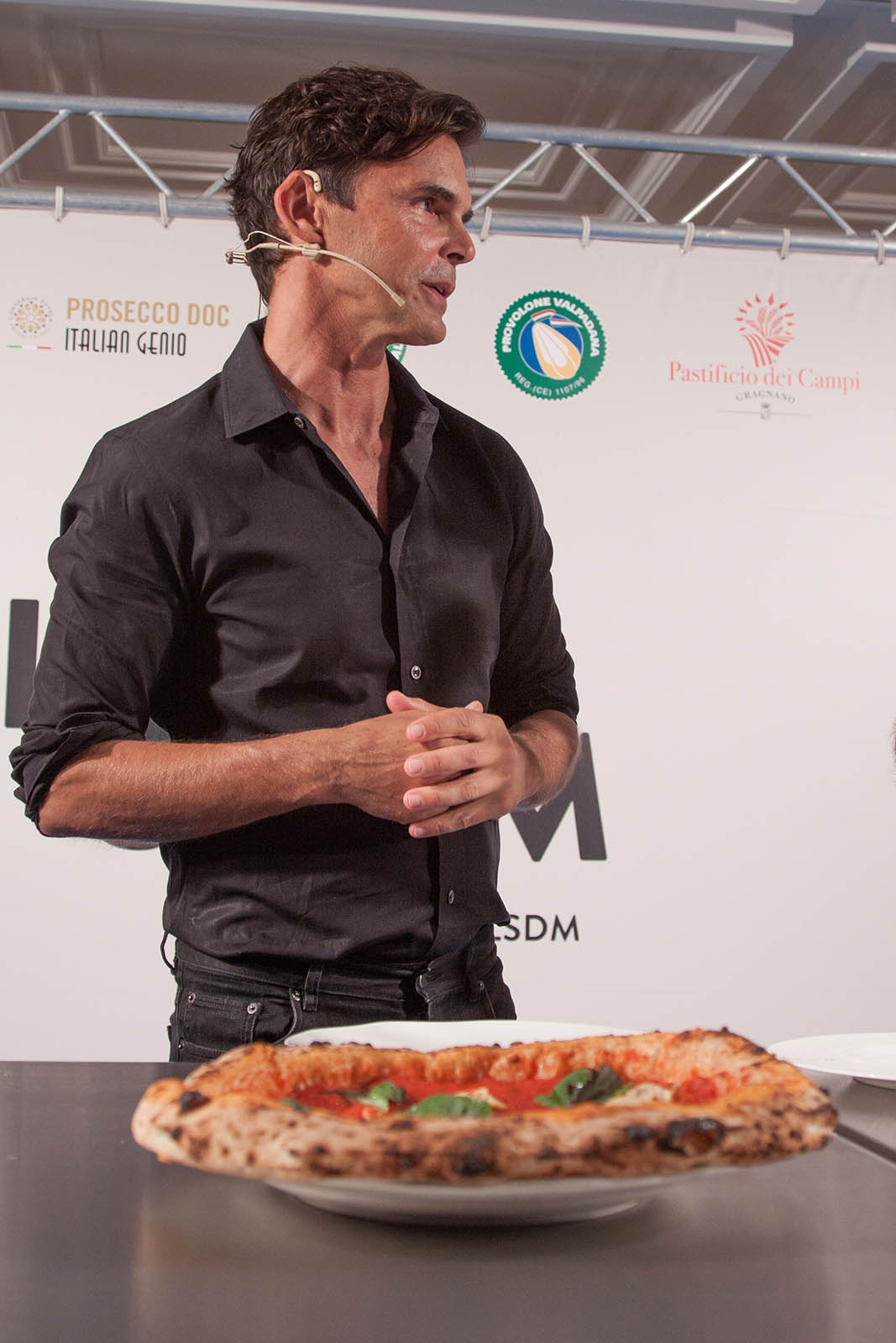 Impresa coraggiosa, considerando che si trovava nella patria della pizza e soprattutto della mozzarella, entrambe cose su cui nessuno qui è disposto a scendere a compromessi. Eppure – aiutato anche dalla collaborazione di Paolo De Simone di DaZero, che ha realizzato l’impasto a base di 100% farina 00 e steso e infornato con i suoi collaboratori – la sua pizza ha convinto il pubblico e anche i colleghi.