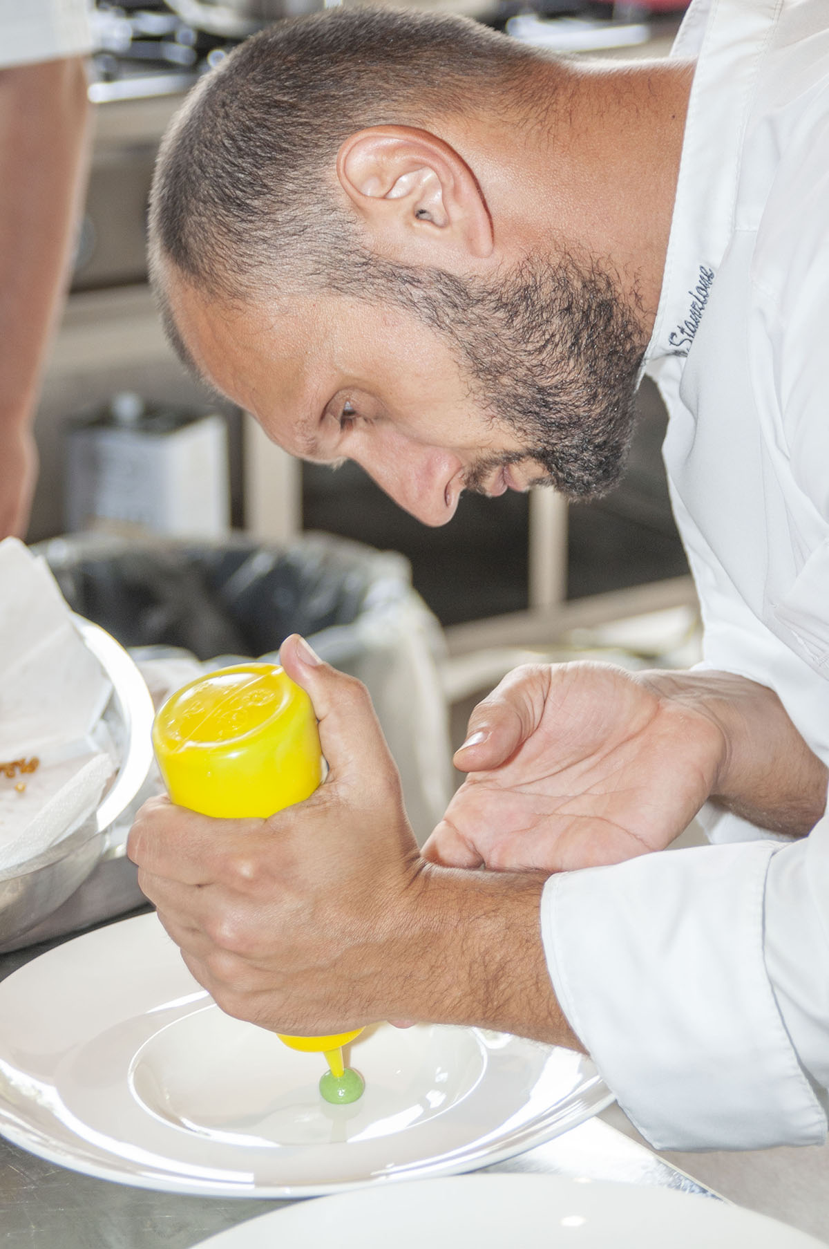Oggi , non a caso il tema, pensiamo verde, ovviamente vegetale, elemento che spesso utilizzo nella mia cucina. C’è alla base una salvaguardia del territorio, a favore di prodotti bio, controllati e che rispettino l’ambiente. Nella gastronomia campana le verdure ci sono e non sono solo buone ma fanno anche bene” – spiega Stanzione.