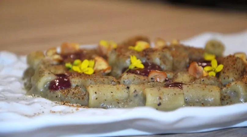 Lo chef, per l’occasione, ha deciso di abbinare i tubetti rigati del Pastificio dei Campi alla Cicerchia, legume il cui consumo è limitato ad alcune aree del centro-sud ed è sempre meno consueto.