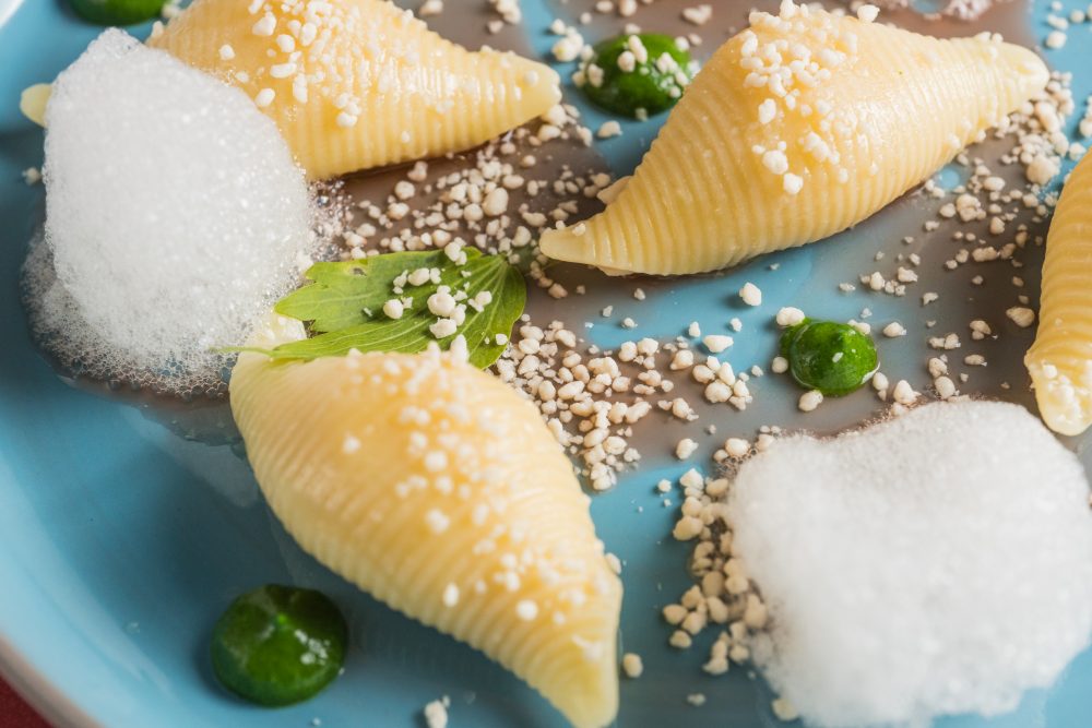 Lo chef, per l’occasione, ha deciso di abbinare i Conchiglioni del Pastificio dei Campi ai Fagioli di Lamon, prodotto IGP.