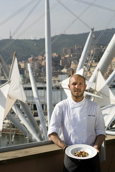 Marco Visciola, chef del Ristorante Il Marin di Eataly a Genova, partecipa al Primo Piatto dei Campi 2018, iniziativa siglata LSDM e Pastificio dei Campi, con Spaghetto, ceci e castagna affumicato.