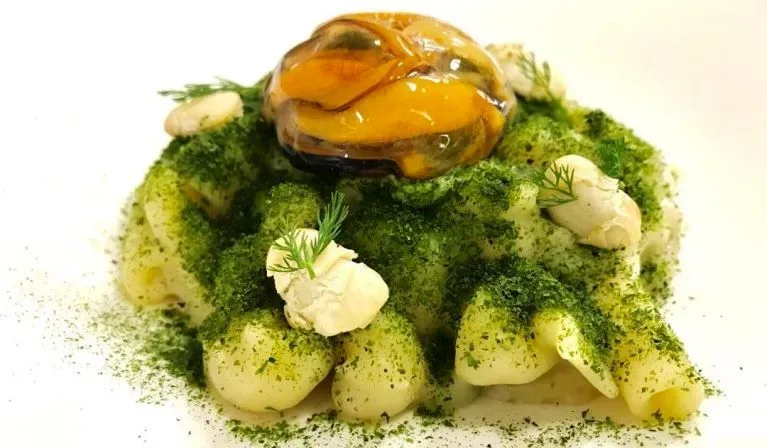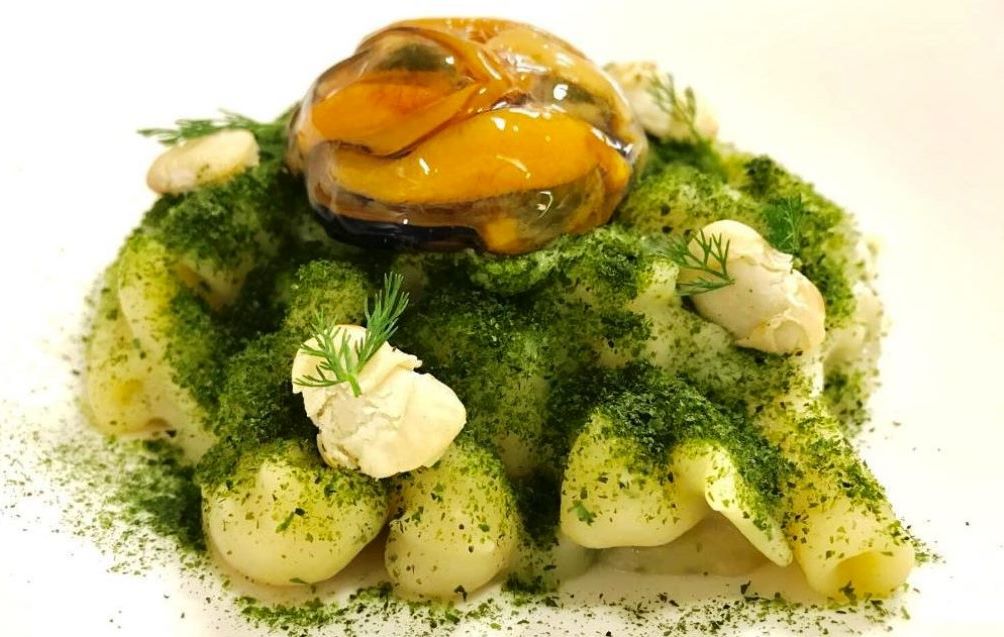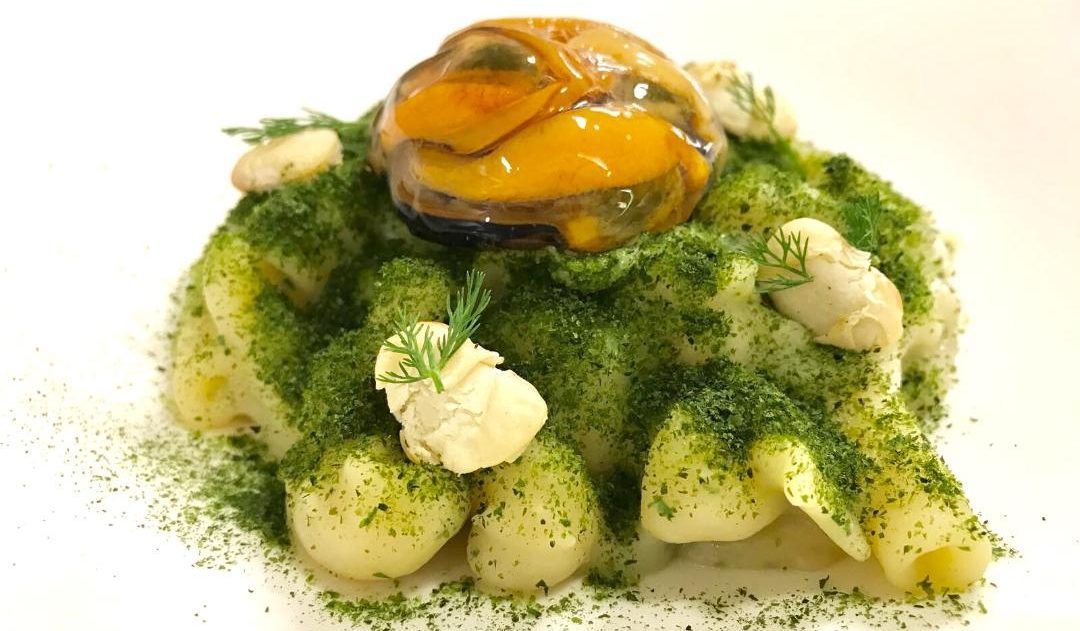 Lo chef, per l’occasione, ha accostato il Mischiato Potente del Pastificio dei Campi al Fagiolo a Formella, detto anche Zecchetella in dialetto Napoletano e così chiamato per la classica forma schiacciata che ricorda quella di un bottone. Dal sapore molto delicato, è di facile abbinamento a pesci, crostacei e mitili.