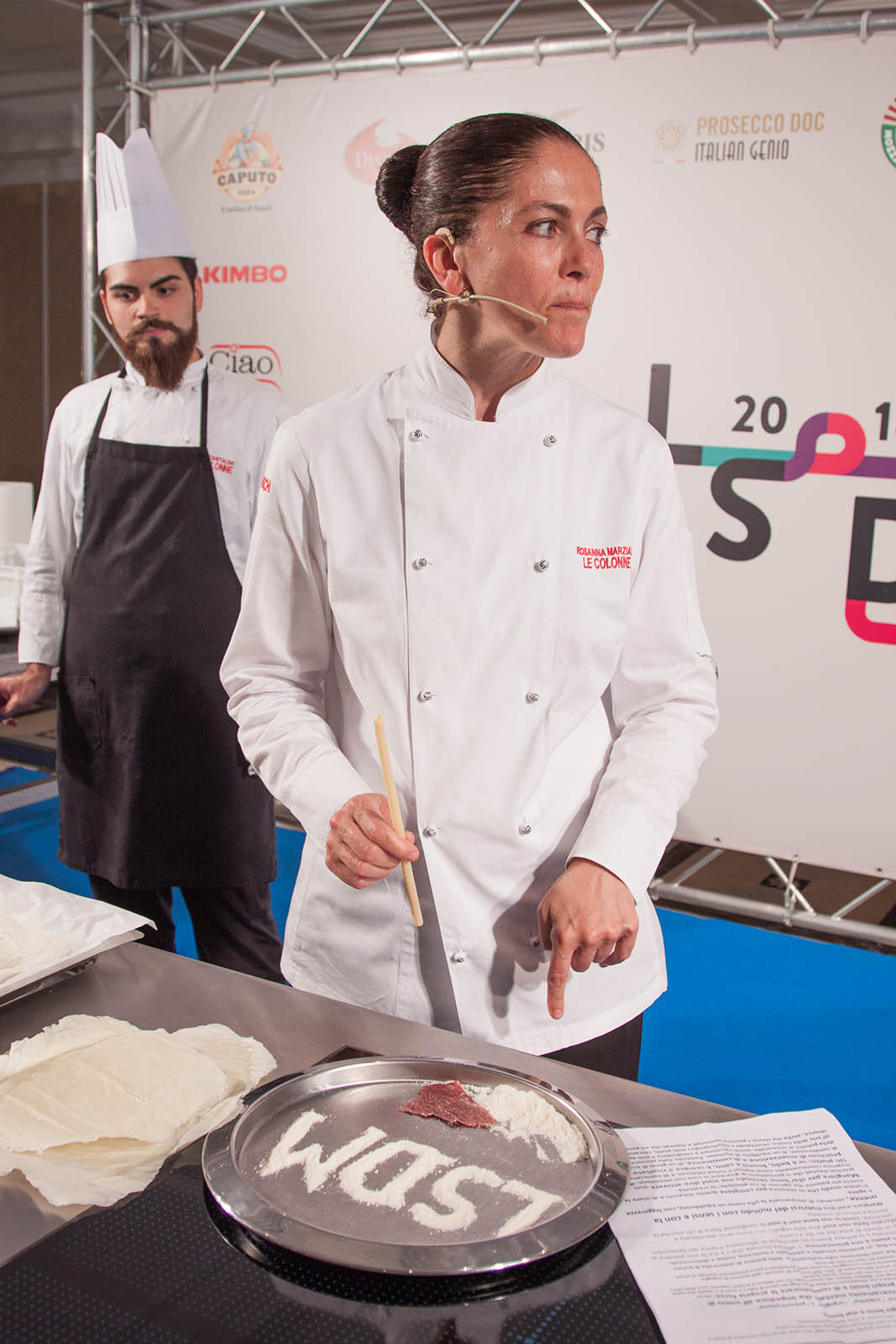 Non un piatto, ma un “prodotto” – derivato dalla lavorazione della mozzarella, di cui la chef de Le Colonne è tra le più assidue e ingegnose ricercatrici – e soprattutto un messaggio, quello proposto da Rosanna Marziale moderata da Livia Montagnoli nella Sala dei Coralli: Hybris, parola greca che sta per “eccesso, tracotanza, superbia, accecamento mentale dell’essere umano che non vuole riconoscere i suoi limiti”.