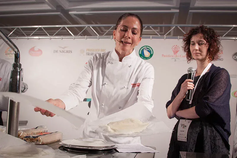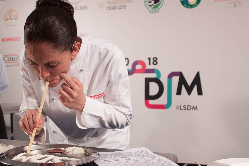 Non un piatto, ma un “prodotto” – derivato dalla lavorazione della mozzarella, di cui la chef de Le Colonne è tra le più assidue e ingegnose ricercatrici – e soprattutto un messaggio, quello proposto da Rosanna Marziale moderata da Livia Montagnoli nella Sala dei Coralli: Hybris, parola greca che sta per “eccesso, tracotanza, superbia, accecamento mentale dell’essere umano che non vuole riconoscere i suoi limiti”.