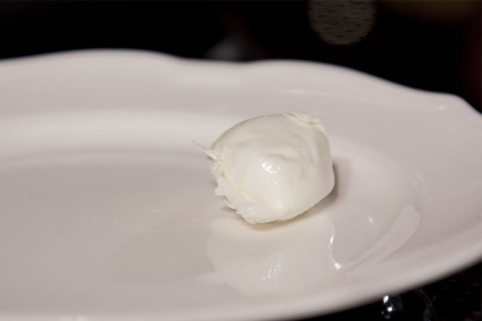 La mozzarella è un prodotto che ha un proprio orgoglio e che va pertanto valorizzato senza stressarlo. Questo è il concetto che Igles Corelli ha presentato a Le strade della Mozzarella nella sala Rock&White. Le tecniche contemporanee vanno utilizzate per rendere i prodotti più salutari ed è così che Igles affumica la mozzarella con il Gastrovac, un macchinario che lavora a sottovuoto e che dà al prodotto la giusta temperatura di servizio, ventotto gradi, e un sentore di fumo non violento.