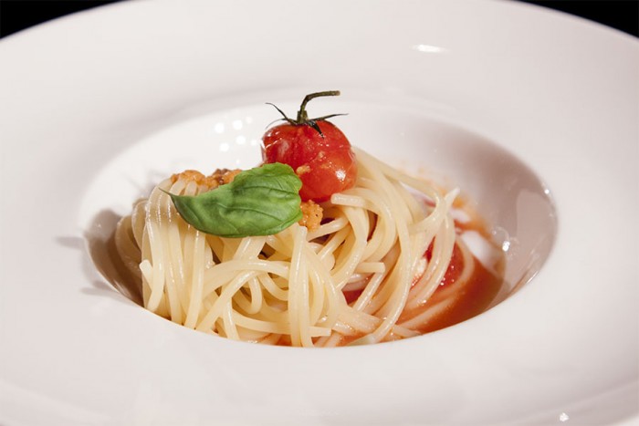 Oggi a tavola ognuno è preso da se stesso, chi sta al cellulare, chi fotografa i piatti, chi si connette ad Internet con il tablet e non c’è più convivialità, dialogo, condivisione. Così Rosanna ha inscenato tutto ciò con un gruppo di suoi ospiti che simulavano ciò che si vede oggi nei ristoranti, ma quando al centro tavola arrivano le zuppiere con gli ingredienti per comporre il piatto tutto cambia e il clima torna ad essere familiare. Spaghetti, mozzarella grigliata e pomodoro presentato in tre diverse versioni (pomodori pachino grigliati, pomodorini del piennolo e San Marzano) mettono d’accordo tutti, ognuno crea il piatto secondo i propri gusti e condivide, abbandonando il proprio Ego.