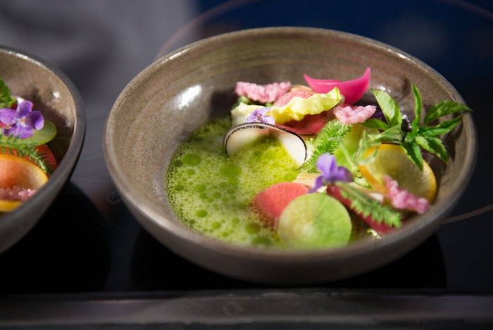 #lsdm: Sang Hoon Degeimbre, il succo di mozzarella con verdure croccanti e cremose