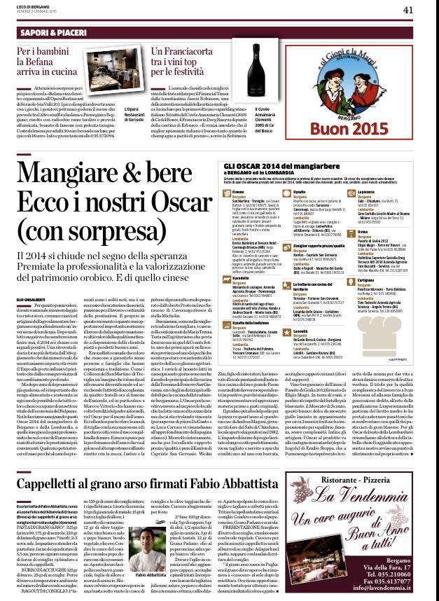 La pizzeria di Gino Sorbillo a Milano, dove ogni giorno il grande Gennaro salvo impasta a mano 400 pizze, è la migliore in Lombardia per l’Eco di Bergamo che come ogni anno assegna i suoi Oscar Gastronomici.