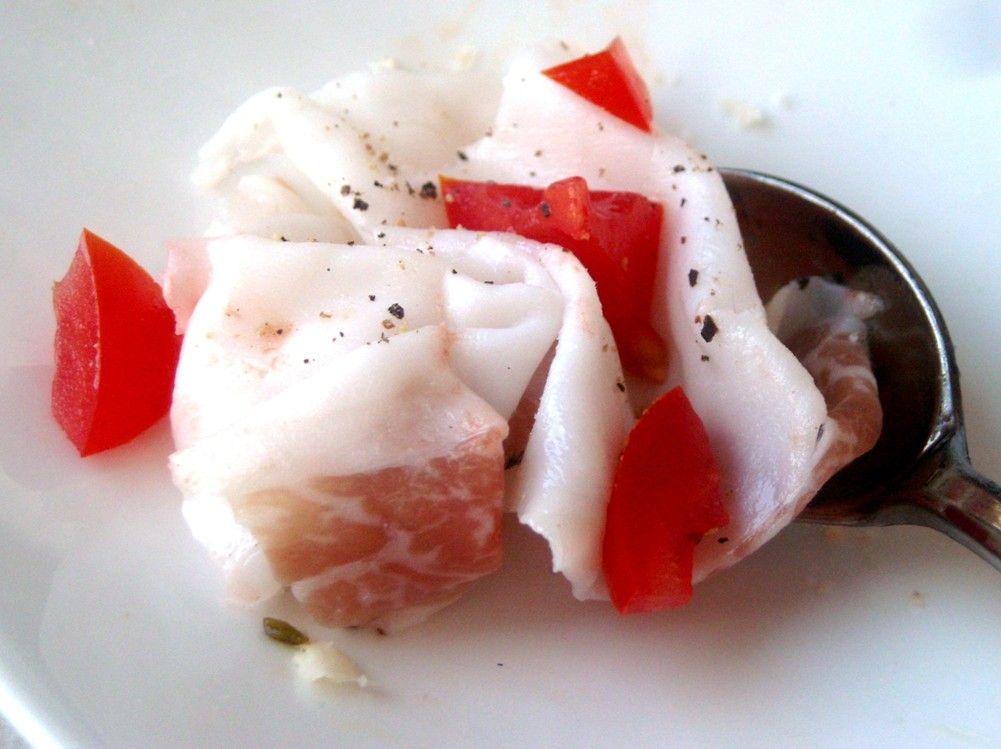 Gli sconfinamenti diventano gioco con un crème caramel e pistacchi appena bagnato in cinque gocce di Chartreuse a folgorare il palato, per predisporlo al contrasto del gelato alla crema affogato in un succo di ciliegie, caldo: uno sherry senza sdolcinature, dritto, la cui forza ruffiana e detergente spostava, con dovuta referenza, la latitudine mentale dall’altra parte del Tirreno, tra la cucina di frutta dei fratelli Roca. Lo shot tiepido di Chartreuse verde e Fever Tree mutava invece solo i confini della personale decenza, tanto che nessuna remora impediva di raccogliere con le dita i pistacchi di Bronte rimasti sul fondo, intrisi di liquore, ammorbiditi dal calore.
