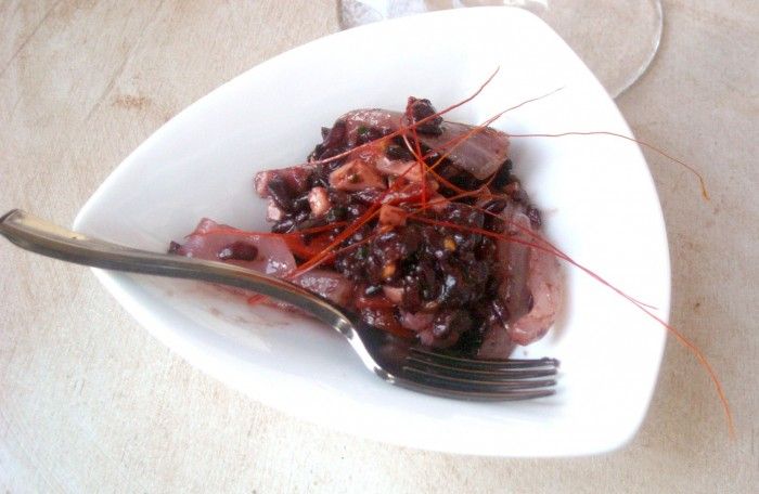 Lo sconfinamento è anche sensoriale, al limite dello smarrimento gustativo se accompagni quel fuoco d’artificio di sapidità, affumicature e speziature con l’acool dolce di un americano e con due sorsi finali di consommé di granchio che è come un bagno purificatore, un’immersione nel primordiale, quello sì ai confini della realtà.