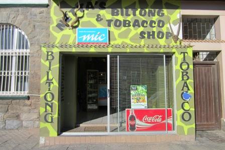 Prima di iniziare i miei giri, faccio scorta di Biltong presso uno dei negozi locali. Per chi non la conoscesse, si tratta di carne essiccata, marinata, speziata e tagliata a strisce sottili. Di solito è fatta con carne di manzo o anche con diversi tipi di selvaggina, per esempio struzzo, orice, springbok e kudu. Venni introdotto, anni addietro, alla biltong da un carissimo amico del Sud Africa dove, come in Namibia, se ne fa larghissimo uso. Ottimo snack da accompagnare a birra freddissima.