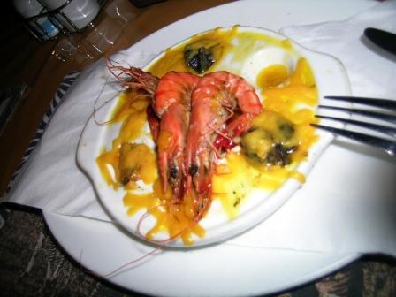 Tornando alla cena, io ho preso un piatto misto: crayfish, ostriche, cozze, calamari e del kingklip (strano pesce oblungo dall’aspetto non proprio affascinante). Altri hanno preso il piatto di soli crayfish (sperando di ripetere l’esperienza del giorno prima).
