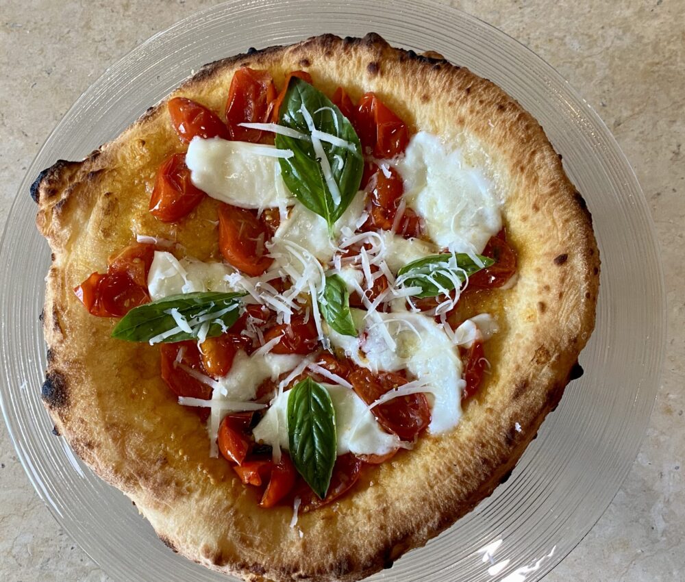 Per onorare le sue origini pugliesi (la mamma è di Lesina), Luigi ha preparato in alternativa alla pizza, due focacce pugliesi, entrambe impastate a mano al pomodorino del piennolo dop.