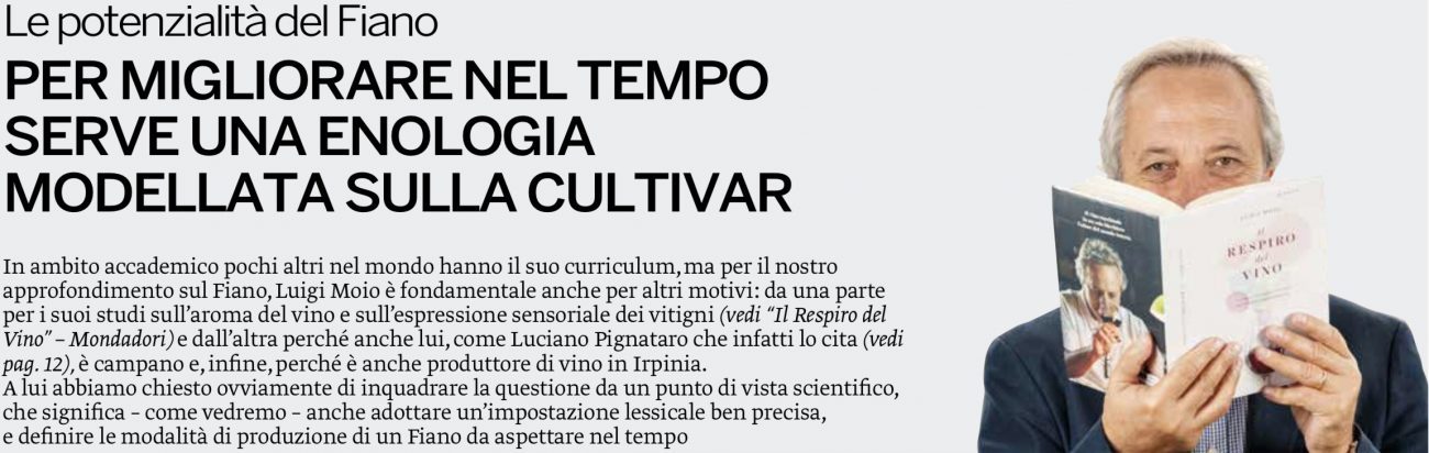 Andando nello specifico del vitigno Moio spiega che “mentre per le uve a carattere varietale forte, molto ricche in precursori, c’è la possibilità di avere vini con evoluzioni positive indipendentemente dai territori dove sono coltivate, per il Fiano è molto importante l’interazione con l’ambiente, se è coltivato nell’areale giusto restituisce un mosto equilibrato che non ha bisogno di interventi eccessivi e quindi si possono mantenere tutti i precursori aromatici varietali”. La chiave rimane quella che Moio definisce “enologia leggera” che è una conseguenza logica dell’applicazione iniziale del concetto di “enologia varietale”, approcci enologici moderni finalizzati a non snaturare il prodotto finale.