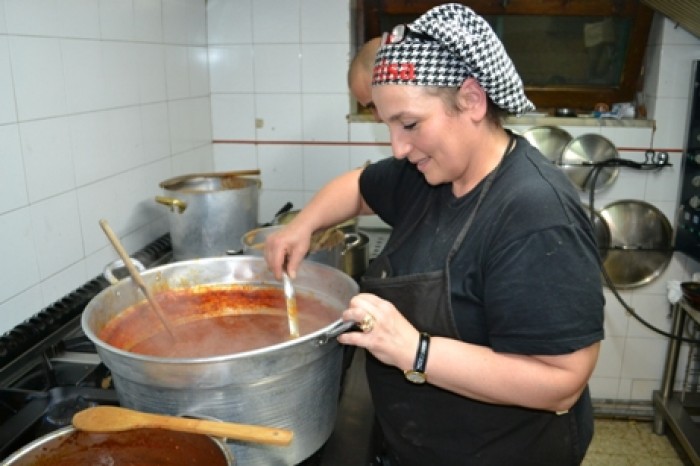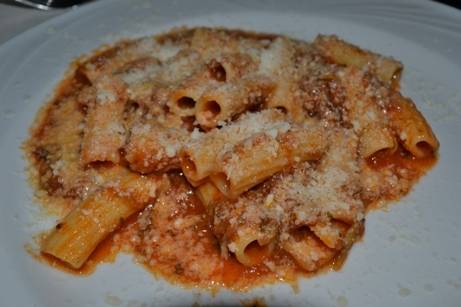 La donna di “casa” , la vera colonna portante del locale, ha deliziato con i suoi piatti i palati dei presenti con un menù particolare, basato sulla tradizione romana, dall’antipasto con bruschette di mortadella e coppiette romane, alla zuppa di fagioli con olive e schiattata romana, ai delicati e saporiti rigatoni alla coda alla vaccinara e alle gustose ciambelline dei castelli romani, ma con l’aggiunta del secondo piatto dedicato a Luigi Veronelli: Guancia di vitello brasata al vino rosso.